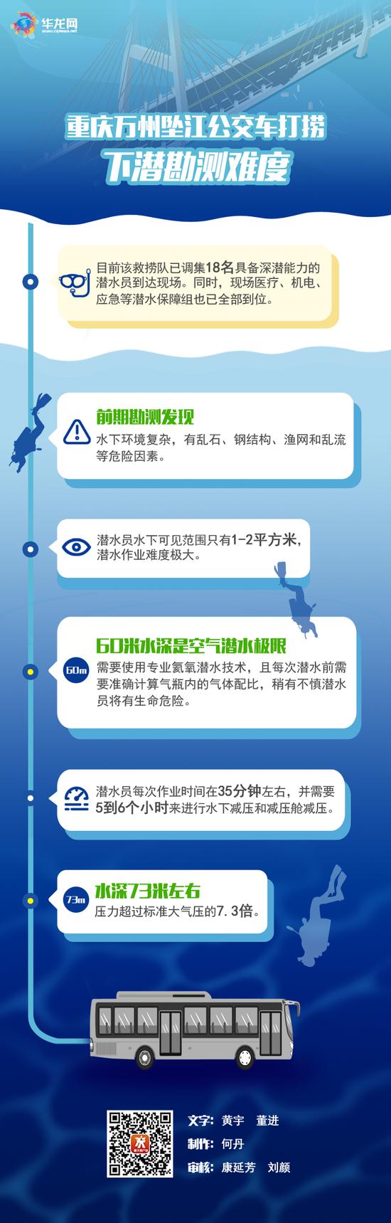 10月29日,重庆市万州区长江二桥附近,打捞船发现一长约11米,宽约3米物体。@万州发布 称经探测定位,确定为坠江公交车,位于长江二桥上游约28米,水深约71米处。公羊队万州前线总指挥王斌称,画面中公交车身广告与公交公司发来的信息吻合。