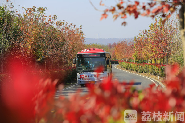 车在路上走,宛在画中游。南京有这么一条“最美公路”,紧邻六合桃花岛、止马岭、李云龙纪念馆等景区,也是通往桃花岛景区的必经之路。每到秋天,公路两边有火红的美国红枫,赤绿相宜的红叶石楠,红色也就成为这条公路的主题颜色。