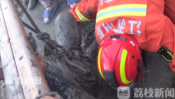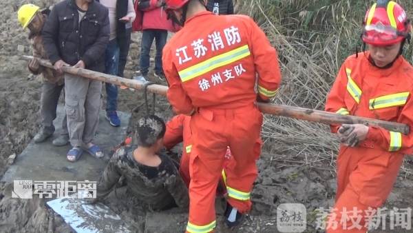 消防员重新给孩子绑上绳子,然后把一根木棍从绳子中间穿过,两边的人合力向上抬,但由于淤泥吸力太大,没能成功。消防员只好徒手扒开孩子身边的淤泥,然后在村民合力下,慢慢把男孩救了出来。