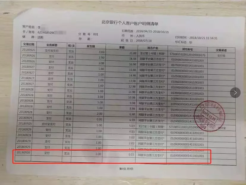 ▲9月30日,李达的新卡中原本近26万元,只剩下3分钱