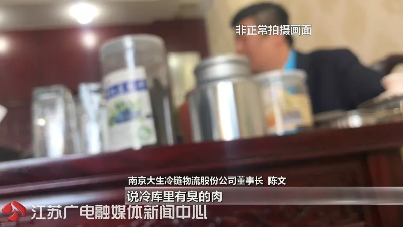 知情人提供的画面显示,这批腐臭冷冻肉当初运进大生冷链公司库房的时候,是公开运输的,知情人表示,腐臭肉运进冷库的事情,大生冷链公司从装卸工到管理层都是知情的。面对记者的质疑,31日上午,南京大生冷链物流股份公司董事长陈文说:“我是29号就听我们下面人就讲了,说冷库里有臭的肉,我就追问这个事情,当时我们就通知他拉走,然后就出了查处的事情。”