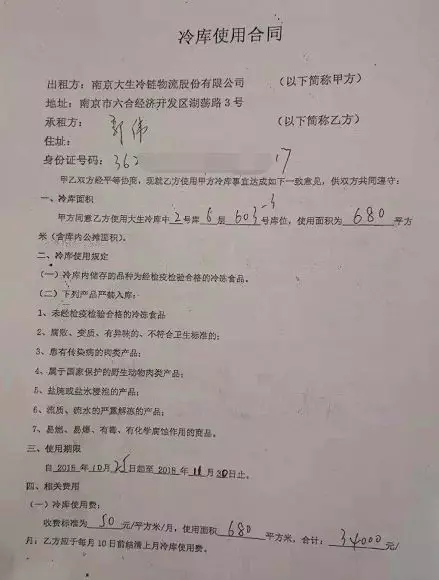 对于29号晚间执法部门查获近百吨严重腐臭变质肉品的情况,30号上午,大生冷链公司表示,涉事的B603号冷库10月25日租给了一个名字叫做郭伟的人,租期一个月,租金34000元。作为管理方,他们事先并不知道这批肉品已经腐败变质,只知道有人要利用冷库做周转,肉品用来作为饲料养雕。