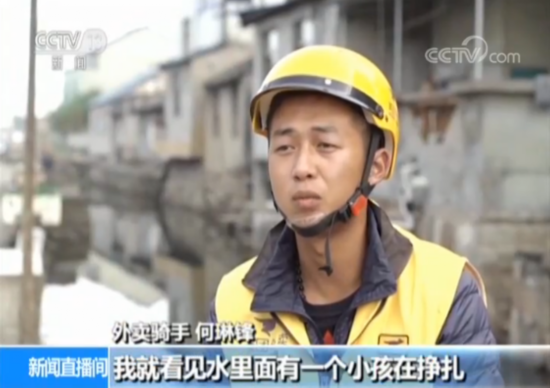 浙江绍兴上虞区美团外卖骑手 何琳锋:她说鞋子在河里面,我想反正都已经湿掉了,再下去一次也没关系的。