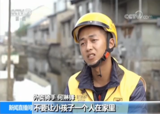 1996年出生的何琳锋从半年前开始送外卖,工作当中,他就是一个热心肠。