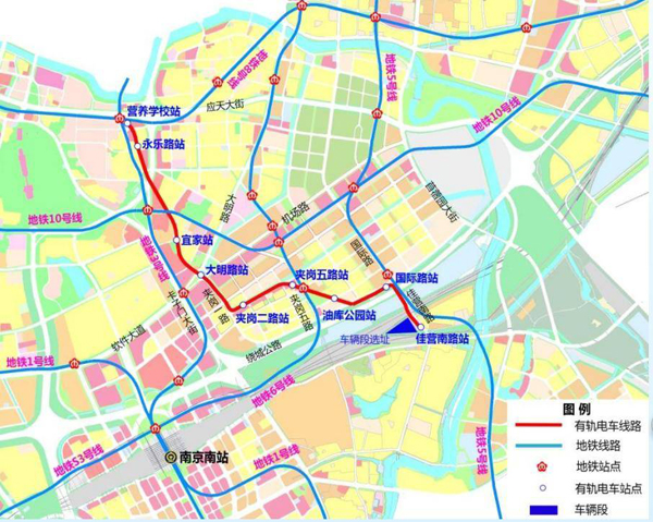10月31日,记者从南京市规划局获悉,原大校机场专用线将改造为南部新城有轨电车的规划正在进行批前公示。原来的单线改造为双线,设站9座,包括营养学校站、永乐路站、宜家站、大明路站等,设计时速50km/h。整条线路可与3号线、5号线、6号线、8号线这4条地铁线换乘。