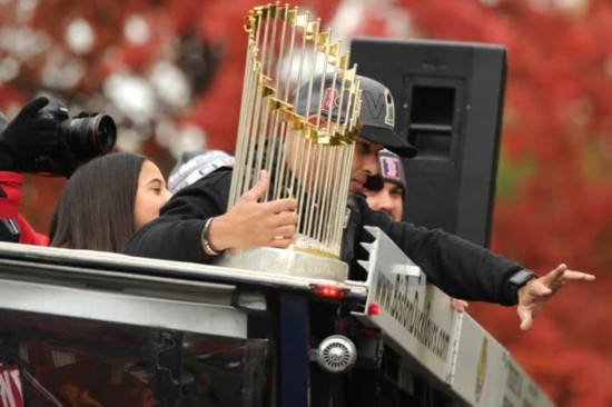 在星期三的夺冠游行中,狂热的球迷向红袜队球员与工作人员扔啤酒。主教练科拉的女儿还被啤酒罐砸到。科拉也未能幸免,也被数个啤酒罐击中。