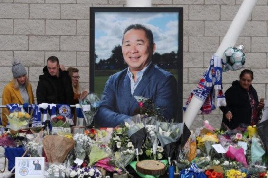 球场外莱斯特城球迷悼念遇难的老板维猜