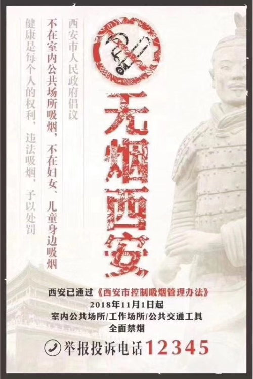 新华网西安11月1日电(张思思)11月1日起,《西安市控制吸烟管理办法》正式施行。西安室内公共场所、公共交通工具及部分公共场所的室外区域全面禁烟。这是继北京、上海、深圳、长春、青岛、南宁和唐山后,全国第八个室内及公共场所全面禁烟的城市。