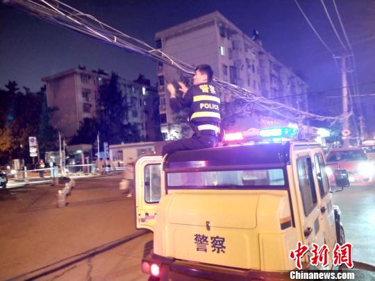 安徽青年交警变身“托举哥”, 手举电缆1小时保障道路安全。 合肥交警供图 摄