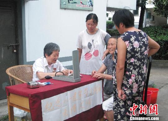 图为朱学佩在建军节为老人无偿义诊 绍兴市妇幼保健院供图 摄