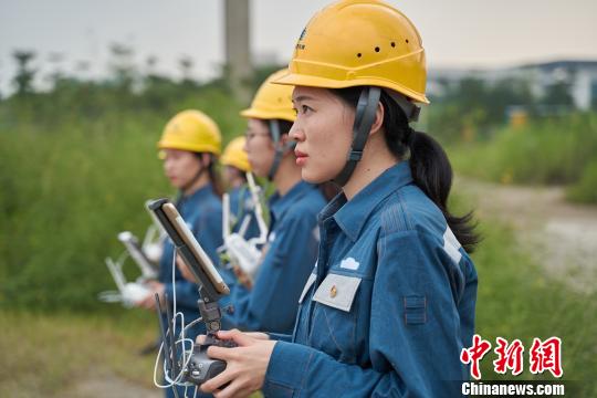广州供电局组建了一支由90后高学历女员工组成的“巾帼无人机飞行队”,运用无人机开展高压线路巡视和故障查找,实力证明巡线查障的高强度“技术活”女生也能胜任。 龚电 摄