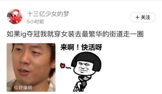 十三亿少女的梦:如果iG夺冠,我就穿女装去最繁华的街道走一圈。
