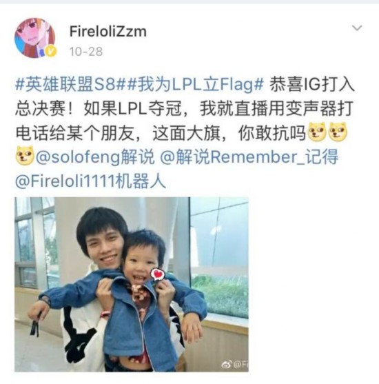 爱萝莉:恭喜iG打入总决赛!如果LPL夺冠,我就直播用变声器打电话给某个朋友。