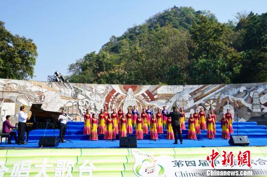 中新网桂林11月3日电(赵琳露 王亚东)11月2日至6日,第四届中国民歌合唱节在广西桂林市举行,来自全国各地的七十多支合唱团竞相上演一场场民歌盛宴。