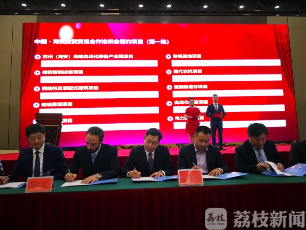 当天,来自美国、英国、德国、日本、意大利、韩国等国内外600多名客商聚集海安市,出席2018中国•海安投资贸易合作洽谈会,会上共签约项目50个,其中外资项目17个,计划总投资22.3亿元;内资项目33个,计划总投资186.6亿元。