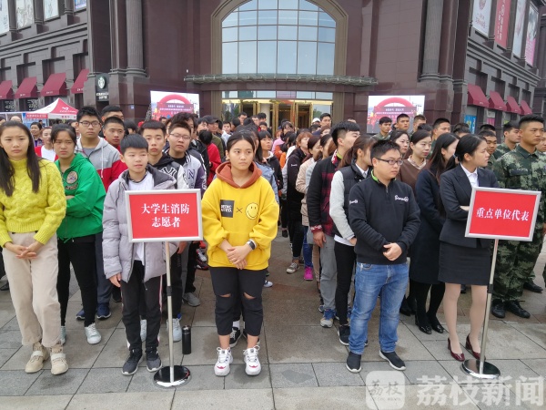 今天(11月6日)上午,盐城举办大型综合体疏散救援演练暨119消防宣传月启动仪式。盐城消防安全委员会成员单位负责人,邮递员代表、快递员代表、消防重点单位代表、大学生消防志愿者代表以及市民代表共计400余人参加启动仪式。