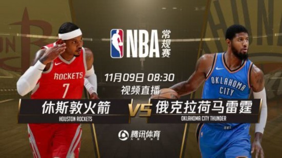 腾讯体育11月8日讯 北京时间11月9日,联盟将迎来一场焦点之战,火箭客场挑战雷霆。拉塞尔-韦斯布鲁克因为脚踝伤势可能缺席,卡梅隆-安东尼战旧主会有怎样的表现?究竟是火箭还是雷霆继续延续连胜势头?腾讯体育将于11月9日上午9点对本场比赛进行视频直播揭开悬念,欢迎球迷们到时收看。