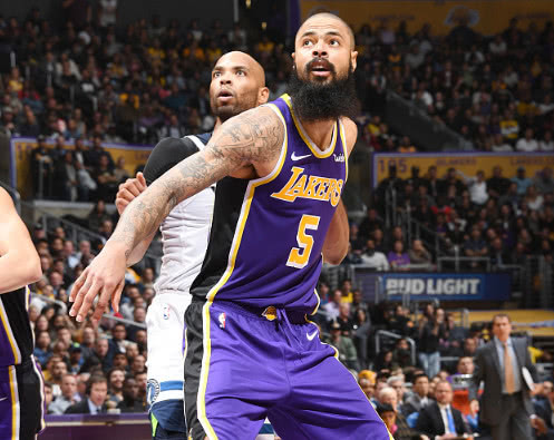 一个巨大的身影高高跃起,在森林狼的唐斯和吉布森两名内线头上将詹姆斯投失的这个篮板拨回到了湖人手中。十秒之后,库兹马三分出手,再次弹框而出,钱德勒此时死死地卡住了对手的身位,篮板球又一次回到湖人手中。