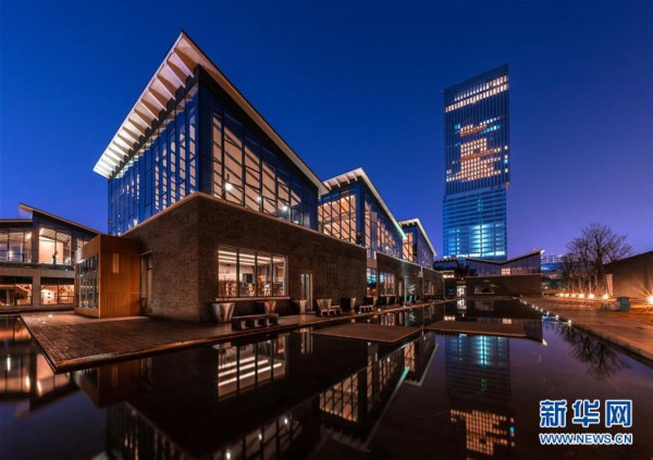 坐落于嘉定新城远香湖畔的嘉定图书馆(2017年12月24日摄)。 新华社发(嘉定图书馆供图)