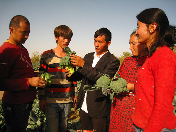 现在,平常有10多户和肉孜托合提一样的贫困户在这里打工,西蓝花栽种时的务工人员高达100多人。