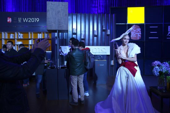 发布会现场,三星以设计师品牌国际服装秀,展示W2019系列手机。