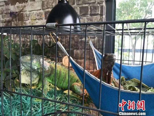 民警们在警官俱乐部养的宠物——蜥蜴。张斌 摄