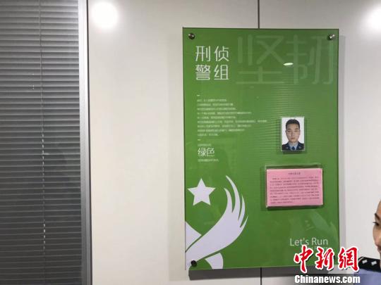 此外,颜色所代表的警组也成为七彩警营文化核心与精髓。如代表坚韧的绿色,对应负重拼搏、勇敢顽强、锲而不舍、无私奉献的刑侦民警。走进刑侦办公区,椅背、鼠标垫、桌签是统一的绿色;打开手机,钉钉工作群里的头像是统一的绿色;警组外墙上的七彩荣誉墙,当季刑侦之星的颜色也是统一的绿色。