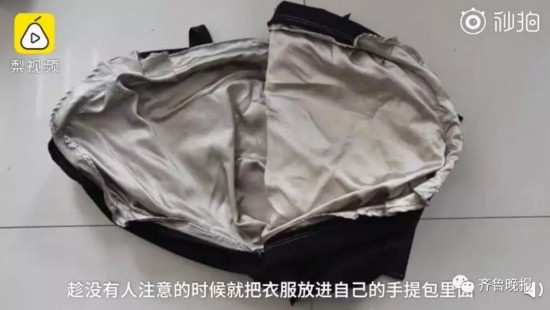 偷完后趁人不注意,就塞进自己的包里。因为包包做了特殊的设置,出门的时候门口的机器不会叫,所以连续偷窃没有被抓。