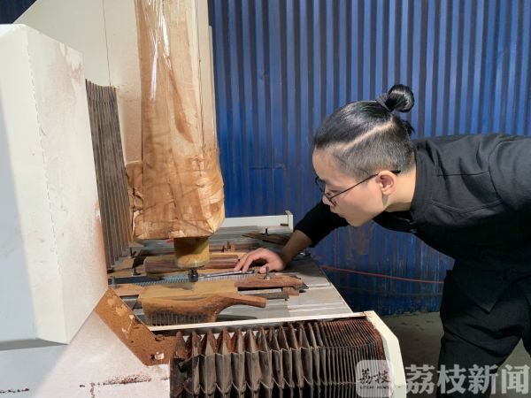 江苏虞林世家红木家具有限公司设计员余鹏成说:“如果机器做下来的话,线条会非常硬,所以手工去修的话,也是随机应变修的,比如一个凿子切下去,它是这个弧度,再切一点,是那一个弧度,它就会有灵动性,有变化,不像机器上出来就是一个线条。”