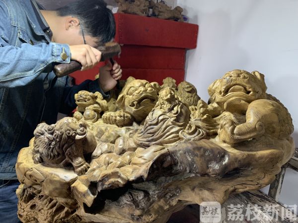 原来,顾连元的父亲顾金生也是一代雕刻名匠,40多年前的一次广交会上,父亲首创的“百狮台”红木雕刻圆桌,首次将狮子文化与红木雕刻完美融合。这件作品让顾连元的父亲一举成名,各地订单接踵而来。因为人手紧张,当时还在进行简单红木加工的顾连元开始跟随父亲雕刻百狮台。
