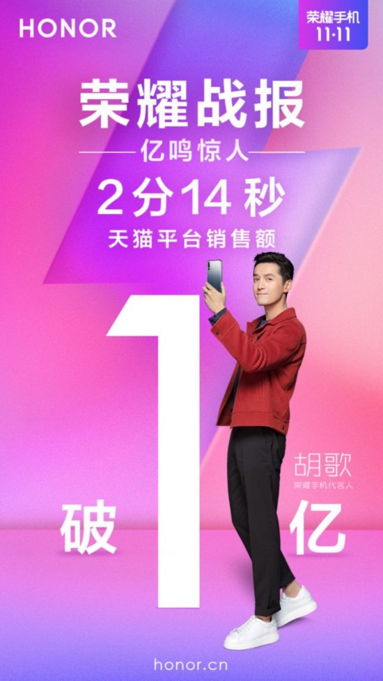 11日凌晨0点2分14秒,荣耀手机正式宣布销售额破亿,这一成绩打破了去年创下的2分34秒最快破亿纪录,标志着今年增长势头良好的荣耀又一次取得手机行业重要战役的胜利。