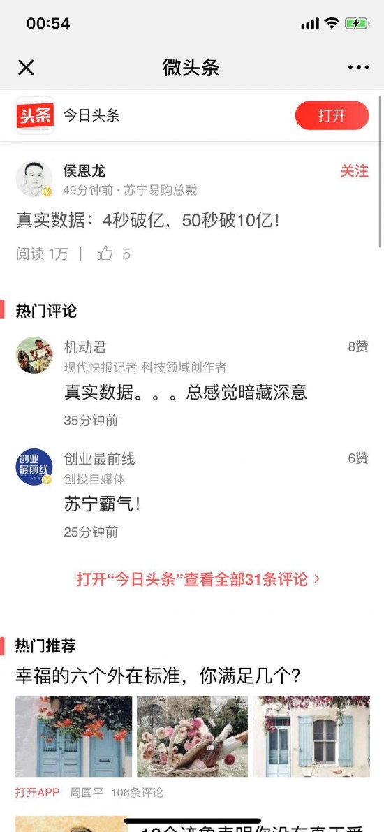 据其披露苏宁双11的真实数据为4秒破亿 ,50秒破10亿。