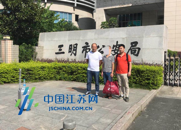 远赴福建抓捕嫌疑人(中间为嫌疑人)