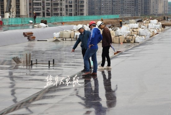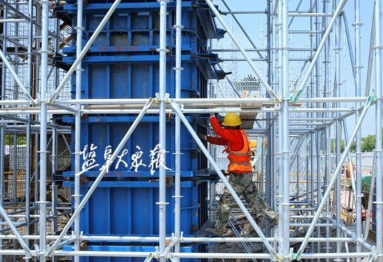 △东环路段面正在进行的支架试压。(张陈栋摄)