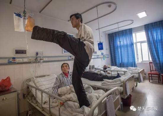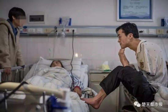 每天母亲输液期间,每隔10分钟陈兹方便用脚提着药瓶陪妈妈上卫生间。