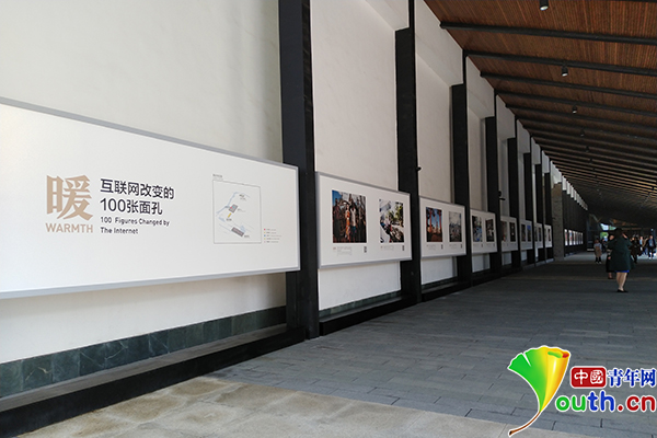 第五届世界互联网大会的“暖——互联网改变的100张面孔”图片展,讲述了100个互联网改变生活的温暖故事。中国青年网记者 杨月 摄