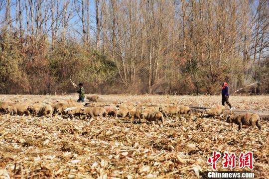 图为在租赁的玉米茬地里放牧羊群。武雪峰 摄