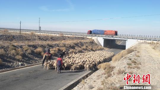 中新网兰州11月12日电 (武雪峰)初冬季节,甘肃张掖市肃南裕固族自治县大河乡通往明花乡许三湾村的公路上,大河乡东岭村牧民马存寿和同伴正赶着羊群行走在茫茫戈壁滩上。为了让自家的冬春季草场得到休养生息,马存寿在相距百公里的许三湾村租赁玉米茬地,进行冬季放牧。