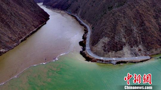金沙江沿江的公路部分路段已被掩埋。钟欣 摄