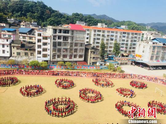 广西三江侗族自治县古宜镇中心小学利用大课间,手牵手跳多耶舞。 周潇男 摄