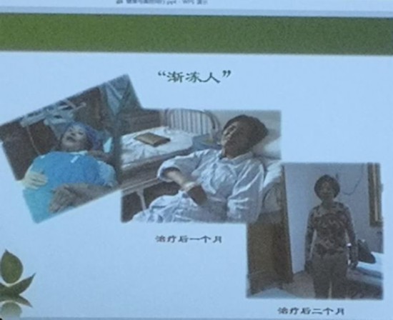 以渐冻人为例,王黎明称,“1个月以后就有效果,2个月以后就完全站起来,”不过她同时称,“这个渐冻人发病时间不长,如果像霍金那样时间久了就救不了了。”