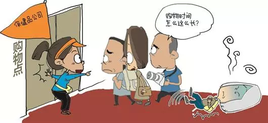 27日上午,导游安排游客在一家珠宝店购物,原本计划的1个半小时购物行程被延长到4个半小时。面对突如其来的强制购物,谋婆婆一时激动,导致心脏不适,现场服用速效救心丸。