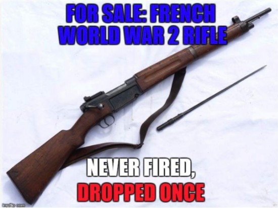 不过,作为一个美国人,特朗普如此侮辱法国倒也并不奇怪。实际上美国也有一些网友也很喜欢玩儿这种“辱法”的梗,比如下面这两张图便是美国网络上流传的一些侮辱法国人“爱投降”的表情图。