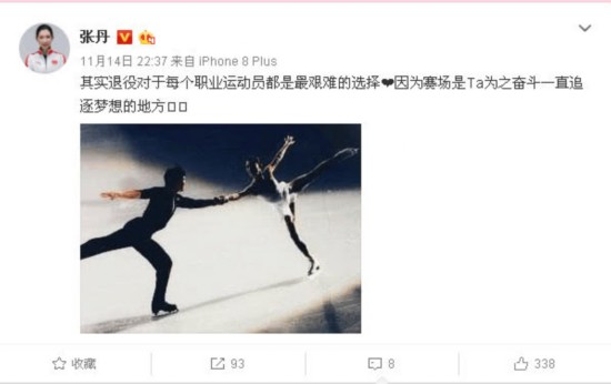 即使冰迷们再不愿意,但也必须接受李子君退役的事实。昨晚,做为为过来人的张丹在微博中表达了自己的看法,“其实退役对于每个职业运动员都是最艰难的选择,因为赛场是Ta为之奋斗一直追逐梦想的地方。”