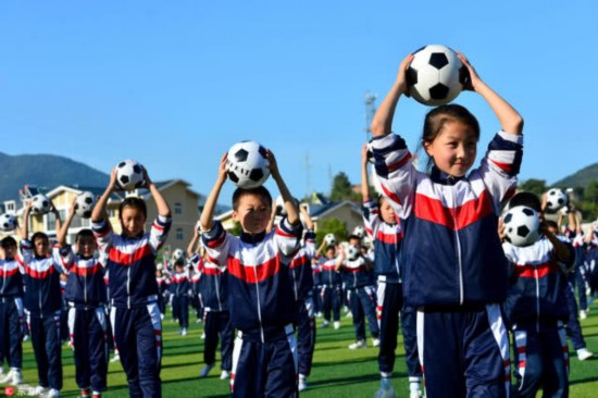 “很多人认为我们校园足球特色学校好像仅仅是通过足球操来实现的。实际上,足球操和校园足球教学训练比赛并不是一回事。校园足球特色学校一定要开足球课,要组织课余训练,要组织校内竞赛。我们现在中小学每天上午和下午各有一个大课间活动,每次20-30分钟的时间,这个时间里,所有的孩子都要到操场上活动。”
