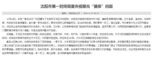 通报指出,辽宁省委、省政府,沈阳市委、市政府对此高度重视。省长唐一军作出批示,要求沈阳市立即调查核实,依法依规处理,同时要举一反三,强化监管。市长姜有为马上召开专题会议,决定成立由市政府副秘书长任组长,市人社局、卫计委、公安局等相关部门组成的市政府调查组,连夜开展工作,对两家医院骗取医保行为、监管部门履职情况等进行深入调查,对违法违规问题决不姑息。