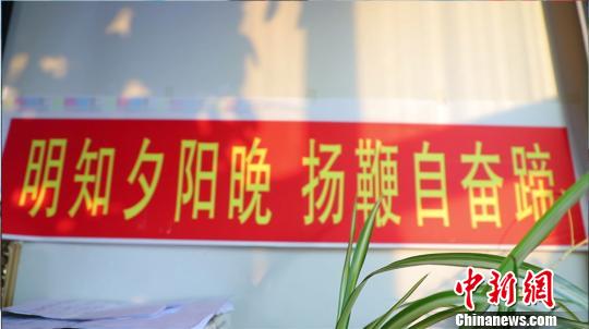 图为贾智杰家墙上挂的“自勉横幅”。 马来虎 摄