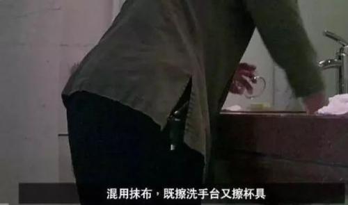 在其提供的视频素材中,十数家五星级酒店的保洁工作存在不同程度的问题。其中,没有对杯具进行消毒,而是直接拿用过的客用毛巾擦洗,没有专用清洁布,一布多用,洗手池杯具甚至马桶混用一布,是普遍存在的现象。