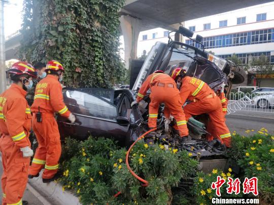 图为昆明消防在事故现场开展救援工作。昆明消防提供摄