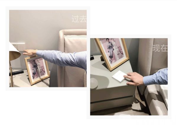 因为是无线开关,加上水洗胶的设计,所以可以随意粘贴在墙上任何一个高度和位置,可以粘贴在床头柜上、桌上等等任何一处家具上,也可以放在枕头边,甚至可以揣进衣兜里……老人起夜不必摸黑下床开灯,孩子长高也不必担心使用不便了。